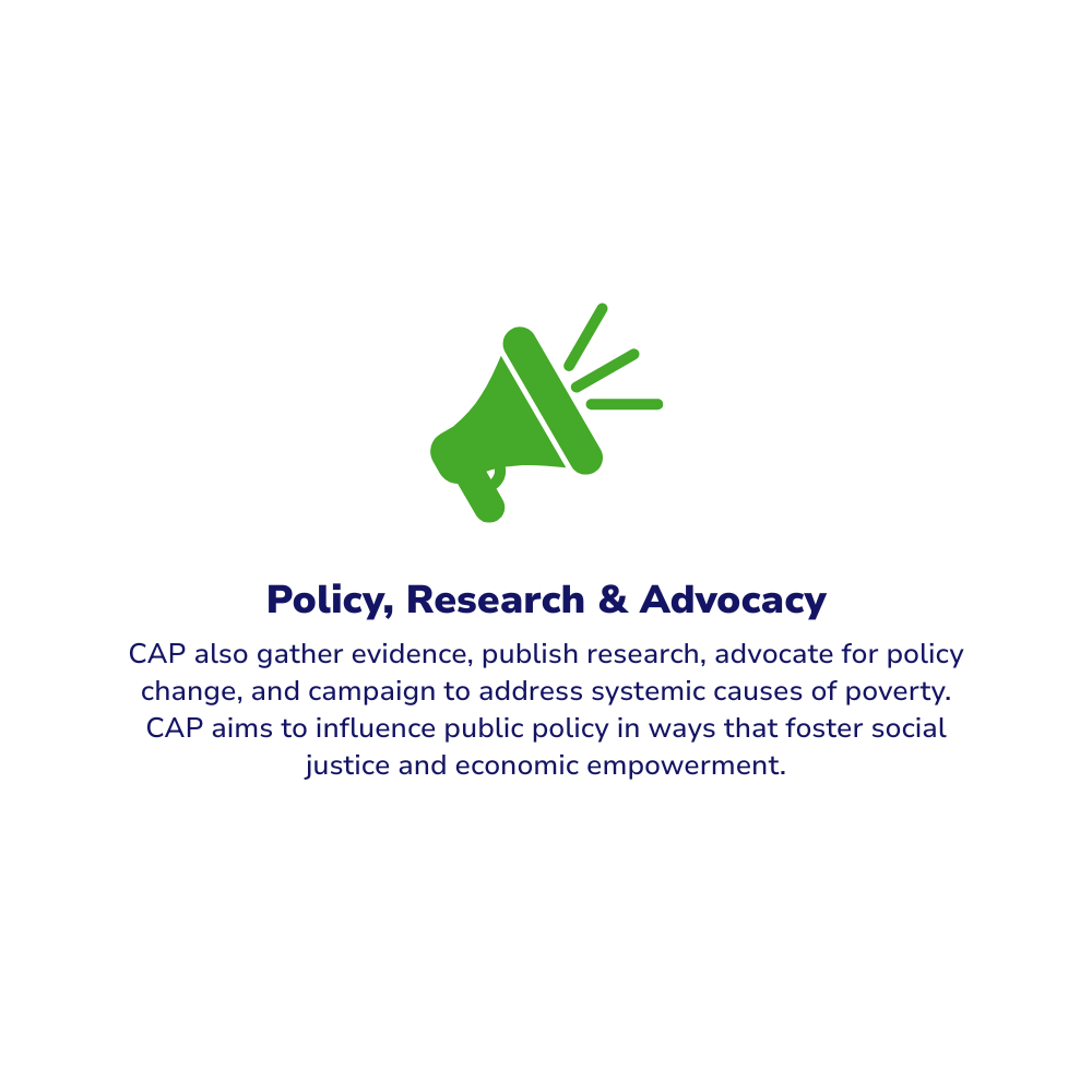 CAP works to tackle both the symptoms and root causes of poverty by combining practical support—such as debt counselling and financial education—with advocacy and community-based initiatives that bring lasting change.